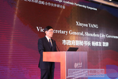 10月18日,2018清華大學(xué)全球科研戰(zhàn)略合作伙伴研討會(huì)在深圳市龍崗區(qū)啟迪協(xié)信科技園召開。清華大學(xué)副校長楊斌,深圳市政府副秘書長楊修友,深圳龍崗區(qū)副區(qū)長陳廣文,啟迪控股副董事長、啟迪協(xié)信董事長吳旭出席活動(dòng)并致辭。