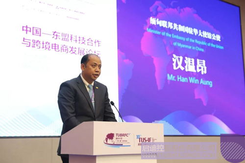緬甸聯邦共和國駐華大使館公使漢溫昂致辭道,中國是緬甸非常重要的電子商務的合作伙伴,在中國—東盟合作框架下中緬合作將進一步深化拓展。2014年起,緬甸執行了電子商務的相關法律,以確保電子商務的能夠長遠進展,我們非常有信心在未來能夠做得更好。