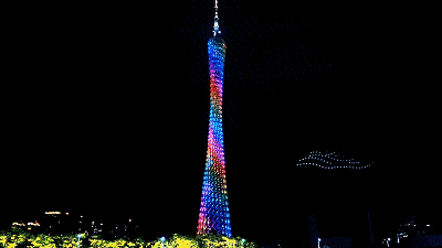 晚會表演精彩紛呈,而其中800架無人機演繹《新彩云追月》,帶觀眾領略前所未有的美的境界。此次無人機編隊表演由遠度科技和高巨創新合力打造,從藝術設計到技術實現再到完美無瑕的現場實施,雙方團隊傾盡全力,各施其責,為此次晚會量身定制了一場集光影科技、現代藝術、嶺南文化于一體的視覺盛宴。