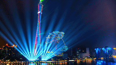 無人機與燈光秀的結合,就像是秋天與落葉的搭配,因為了彼此的存在,才成就了絕美的風景。燈光的創意呈現為無人機編隊表演穿上了一件華麗的外衣,也正是這件外衣,讓無人機成為了夜空中的精靈。也正是無人機在空中的多變造型,讓燈光秀得以在全新的空間大放異彩,自此,可以在空中綻放的不只有煙花,還有無人機編隊表演這一全新的媒體形式。
