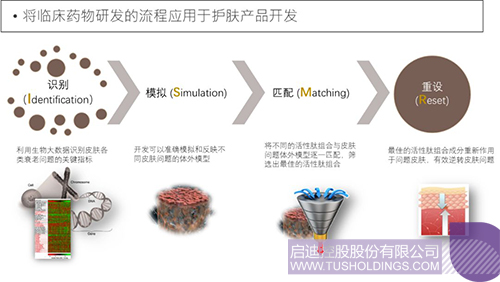 二、 功效成分篩選平臺。將臨床藥物研發(fā)的流程應(yīng)用于護膚產(chǎn)品開發(fā),針對不同皮膚衰老問題,建立集識別(Identification)、模擬(Simulation)、匹配(Matching)以及重設(shè)(Reset)為一體的I.S.M.R的流程。在此基礎(chǔ)上與分泌型天然多肽因子庫有機結(jié)合,目標導(dǎo)向化高效篩選創(chuàng)新型多肽成分組合。