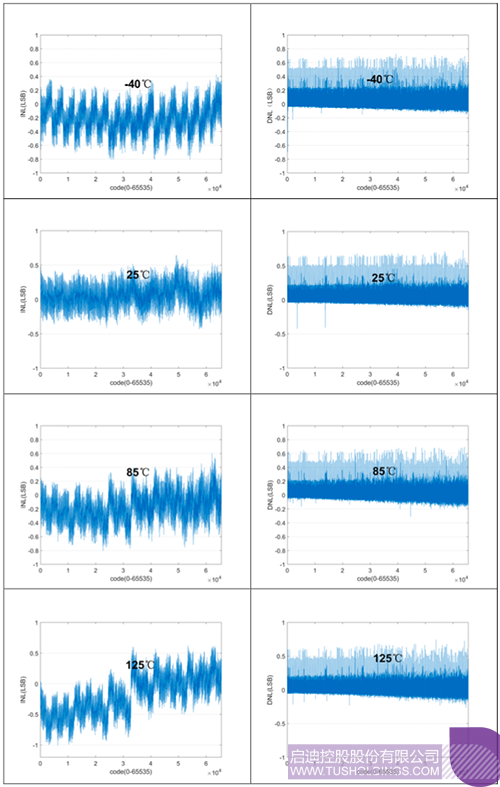 不過,這一格局即將被打破。經(jīng)過一年多的開發(fā),智毅聚芯成功突破16bit高精度DAC核心技術(shù),產(chǎn)品實(shí)測結(jié)果顯示,在-40℃~85℃溫度范圍內(nèi),積分非線性(INL)小于1LSB,微分非線性(DNL)小于1LSB。在-40℃~125℃溫度范圍內(nèi),積分非線性(INL)小于2LSB,微分非線性(DNL)小于1LSB。