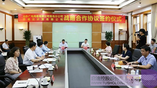 啟迪控股高級副總裁、啟迪云計算有限公司董事長侯樹立,山東廣電網絡有限公司黨委書記、董事長李建華,山東廣電網絡有限公司董事會秘書劉洪昌,青島市城陽區委書記王波,城陽區委宣傳部長劉青林等出席簽約儀式。啟迪云計算有限公司副總裁程松濤,山東廣電集團青島分公司負責人王英宗代表雙方簽約。