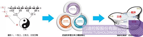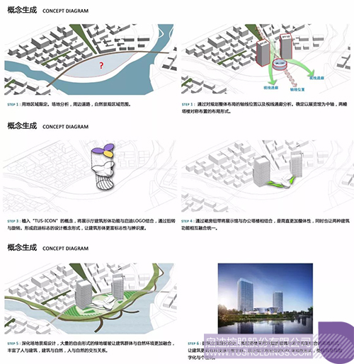 建筑作為環境形態構成的重要因素必定要承載文化的使命。展示中心立意突出清華文化,嚴謹而富有內涵。結合清華科技園與啟迪文化,提出“TUS-ICON”的設計理念構思。通過對啟迪企業特質和文化的提煉,以及建筑形體的演繹來詮釋啟迪控股從“三螺旋模式”到“集群式創新”的理論實踐。