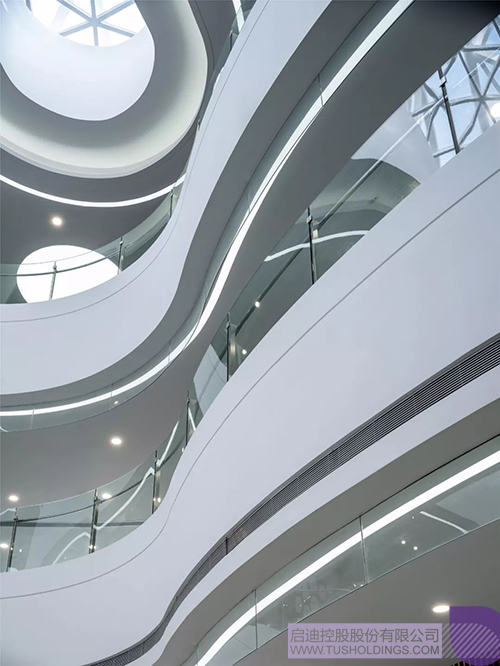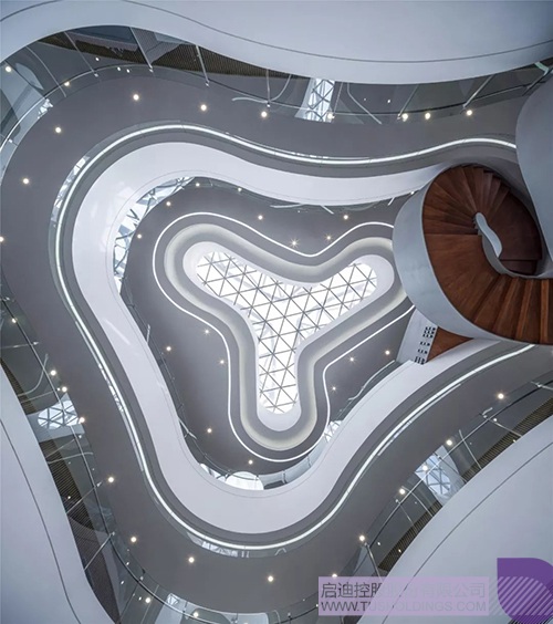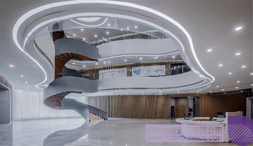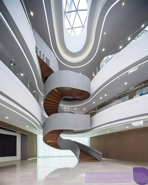 螺旋上升的旋轉樓梯將啟迪文化魅力展示有機的串聯了起來。作為設立集展示、交流、服務功能于一體的綜合性工作場所吸引新興科技企業入駐,促進企業的成長壯大。為科技人員、投資者、建設者提供學術思想、技術信息、創業創新技能的交流場所。