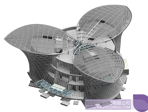 1、設計體型的復雜化以致于設計一開始就采用BIM參數化手段全過程設計,由于體型復雜,建筑、結構、幕墻三個專業的定位、構架、分割需相互契合,設計的過程中,由上述三專業人員在同一個BIM模型中協同工作。