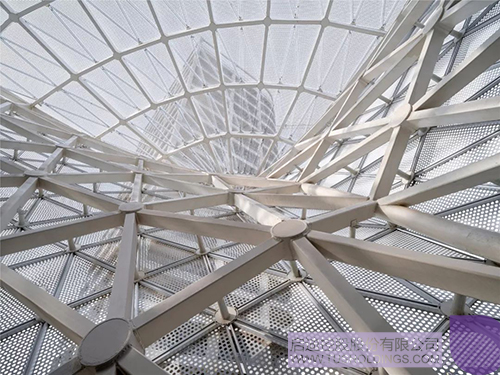 2、在建筑確定的形體空間下,結構專業選擇空間網架結構為實施方向,并估算大致的空間桿件連接尺寸。通過偏移建筑外表皮,在參數化條件下自動生成結構空間網架線性模型,結構專業以此模型為基礎,進行結構計算,確定最終的網架關系及構件尺寸。同時幕墻專業確定幕墻形式,提供經濟可行的板塊分割控制尺度,通過參數化工具,生成同建筑形體及結構網架線相適宜的板幕墻板塊分割,幕墻專業在此基礎上深化各板塊的構造做法及連接關系。在完成建筑方案及各專業深化后,在Revit中進行項目施工圖的設計工作,以建筑幕墻、結構、機電三個中心模型通過鏈接的方式共同實施,以此落實項目的設計構思。