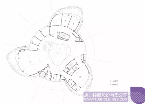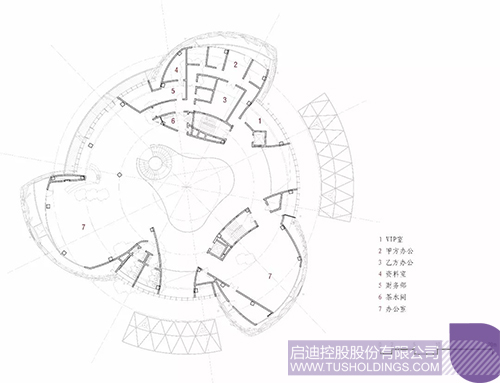 2、建筑內部空間圍繞核心中庭予以布置
