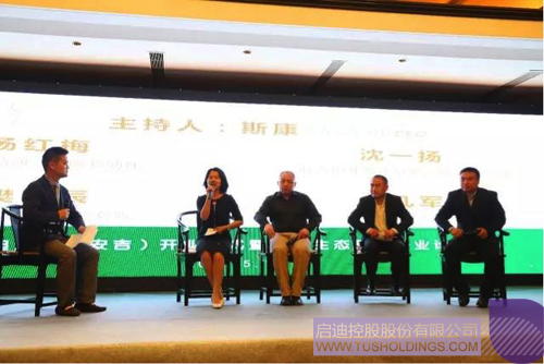 在隨后的國際生態環保對話中,啟迪創新研究院副院長楊紅梅、亞洲開發銀行和聯合國開發計劃署高級能源顧問沈一揚、亞都凈水銷售總監樊明辰、啟迪清蕓市場總監孟凡軍與主持人斯康(安吉云界生物科技CEO)展開了一場關于生態環保產業發展的頭腦風暴。