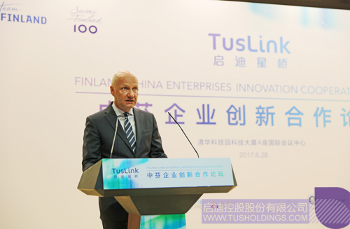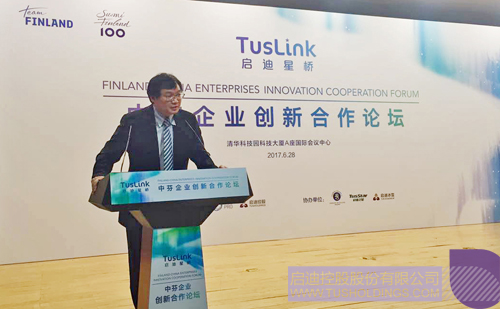 6月28日,值芬蘭共和國(guó)總理西皮萊閣下訪問中國(guó)之際,芬蘭貿(mào)易投資旅游促進(jìn)總署率芬蘭50余家知名企業(yè)和啟迪控股攜手舉辦“TusLink-中芬企業(yè)創(chuàng)新合作論壇”,旨在通過TusLink打造眾星互動(dòng)的國(guó)際化創(chuàng)新生態(tài)系統(tǒng)。芬蘭經(jīng)濟(jì)與就業(yè)部副部長(zhǎng)古澤森(Jari Gustafsson),啟迪控股副總裁、啟迪之星董事長(zhǎng)張金生出席活動(dòng)并致辭。