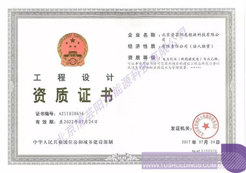 7月24日,啟迪清蕓喜獲電力行業(新能源發電)專業工程設計乙級資質,是北京市同批資質獲此專業的唯一企業。標志著啟迪清蕓新能源電力設計能力和工程總承包資質得到了國家有關部門的認證,可對外獨立承接新能源電力工程咨詢、設計、工程總承包等業務。