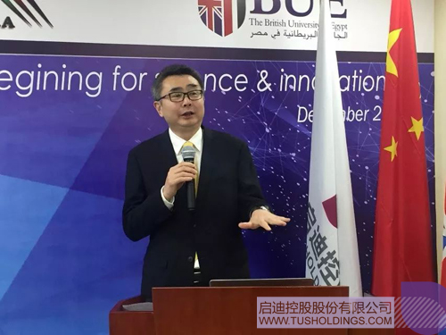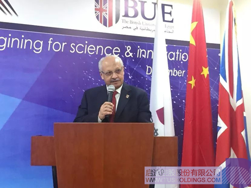 埃及BUE大學校長艾哈邁德?哈邁德在致辭時表示,埃及目前正在面臨著轉型升級的重要階段,科技創新將成為推進社會進步與經濟發展的重要驅動力,因此BUE大學致力于打造全鏈條的創新生態系統,并以此服務于埃及社會。哈邁德教授還表示,建設埃及的第一個大學科技園,任重而道遠,然而與啟迪控股這樣先進的科技服務企業合作,BUE大學有信心成功運營科技園。啟迪的在園區管理運營方面的成功經驗以及其全球創新網絡,將為埃及的政府、大學、企業帶來新理念、新觀點和新方法,必將為埃及的科技創新領域注入新的活力。