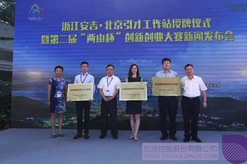 6月29日,浙江安吉·北京引才工作站授牌暨第二屆“兩山杯”創新創業大賽啟動儀式在清華科技園陽光廳舉行。安吉縣委書記沈銘權,安吉縣委常委、組織部部長呂立,安吉縣人大常委會副主任王愛民,清華科技園管委會主任、啟迪控股黨委書記兼副董事長李志強,清華科技園管委會副主任、啟迪控股副總裁、啟迪之星董事長張金生等出席啟動儀式。