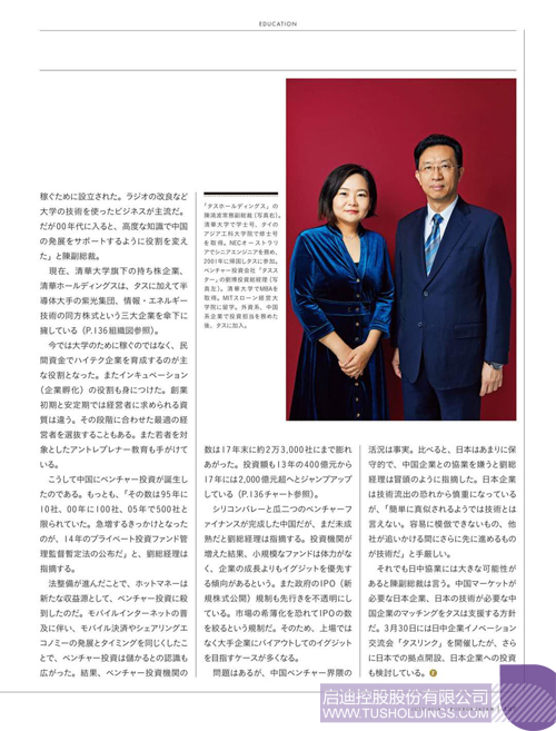 啟迪控股是清華大學(xué)的“校辦企業(yè)”,總資產(chǎn)達2000億元(約3兆4000億日元)。20世紀(jì)80年代到90年代,隨著政府機構(gòu)改革的深入,中國的大學(xué)開始設(shè)立自己的公司。啟迪控股的前身為清華科技園發(fā)展中心,成立于1994年,是許多清華大學(xué)企業(yè)的聚集地。2004年正式更名為啟迪控股。
