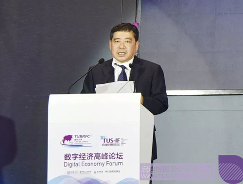 啟迪控股常務副總裁、中關村數字產城聯盟理事長趙東在數字經濟高峰論壇上致辭