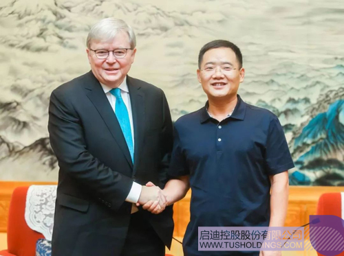 2018年8月7日至9日,啟迪控股董事長王濟武與澳大利亞第26 任、28 任總理、美國亞洲協會政策研究院院長陸克文會面,雙方并圍繞“中美貿易關系”、“中國智慧與創新之路”等主題在湖畔大學課堂與第十二屆品牌節主論壇先后發言互動。