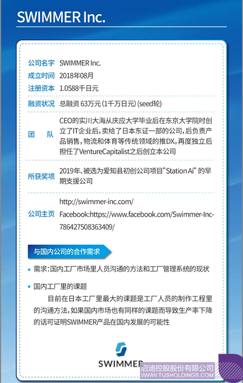 本次路演共有4家對與中國合作落地感興趣的日本科創企業參加,分別是農業科技領域的GRA&GREEN、生產管理軟件研發領域的SWIMMER、基因編輯技術領域的SetsuroTech和新材料領域的U-MAP。