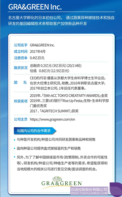 GRA&GREEN主要通過蔬果異種嫁接技術和獨自研發的基因編輯技術來加快新品種開發,此外還進行盒式嫁接苗的生產和銷售。