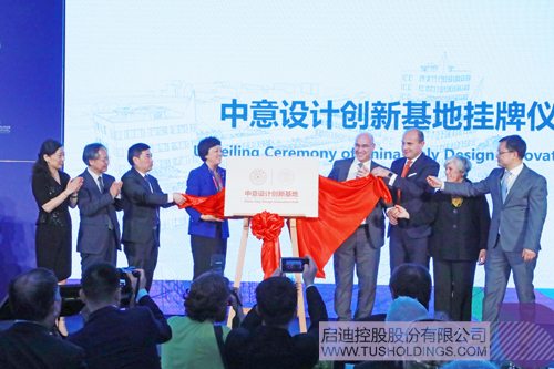 陳旭、宋雪峰、費盧奇奧·內斯塔、朱利亞諾·諾齊、清華大學國際合作交流處處長酈金梁及美術學院院長魯曉波、米蘭理工大學設計系主任西爾維亞·皮亞迪、啟迪控股總裁袁桅共同為“中意設計創新基地”掛牌。