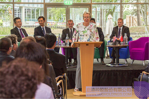英女王特使Julie Spence在開幕儀式致閉幕辭中對劍橋啟迪科技園的開幕表示由衷祝賀,希望啟迪能盡快融入劍橋以及英國的創新科技生態,并通過其自身的資源與網絡,實現中英兩國創新創業資源的互聯互通,將劍橋啟迪科技園打造成劍橋的新名片。