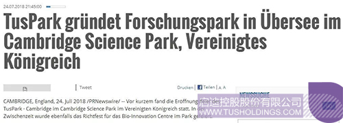 全球數(shù)百家媒體報道啟迪控股在英國劍橋投資建設(shè)運營科技園區(qū)打印