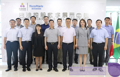 薛廷伍總經理(前排左四)一行參觀啟迪控股數字展廳
