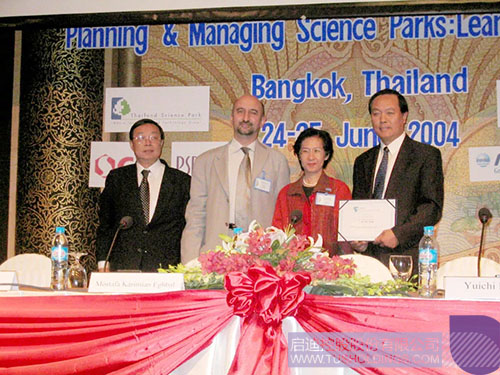 2004年,時(shí)任啟迪控股董事長(zhǎng)梅萌先生(右一)出席在曼谷舉行的IASP亞太分會(huì)大會(huì)